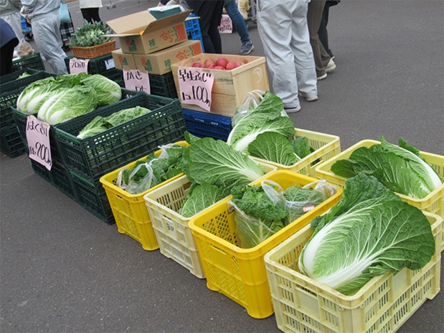 ![]() 朝採れたての新鮮な野菜が数多く並びました。 |